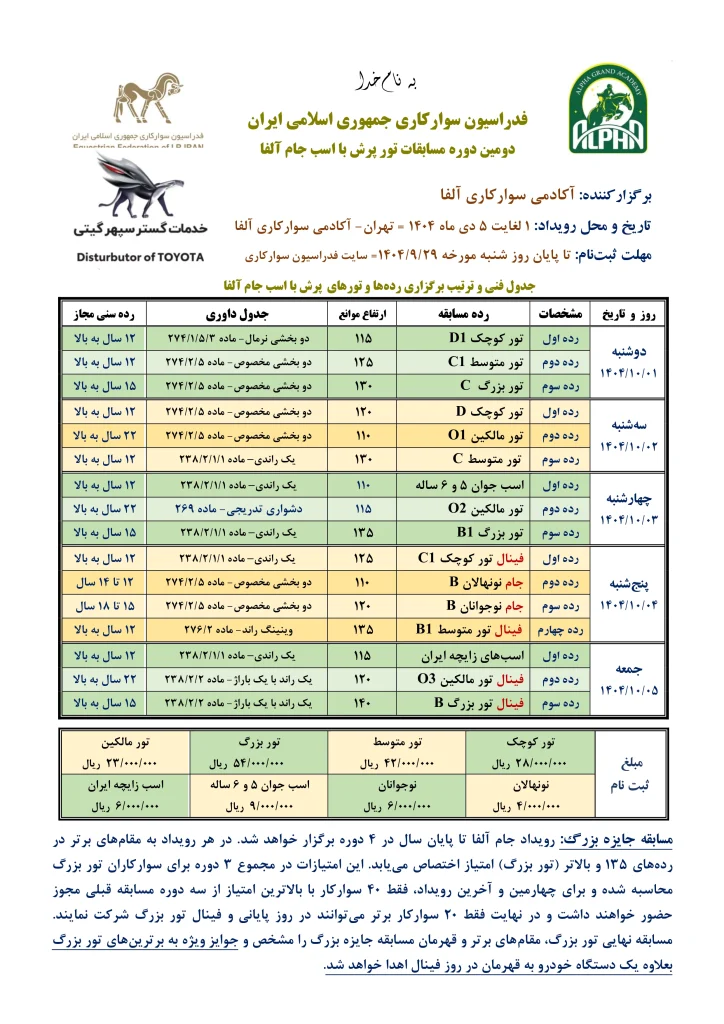 محل برگزاری: تهران- باشگاه سوارکاری آلفا